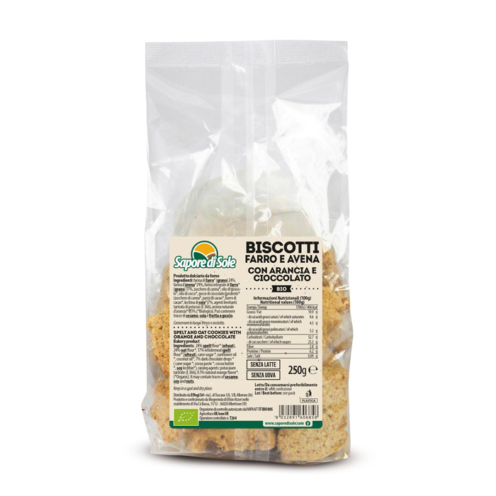 Biscotti farro e avena con arancia e cioccolato bio 250gr.